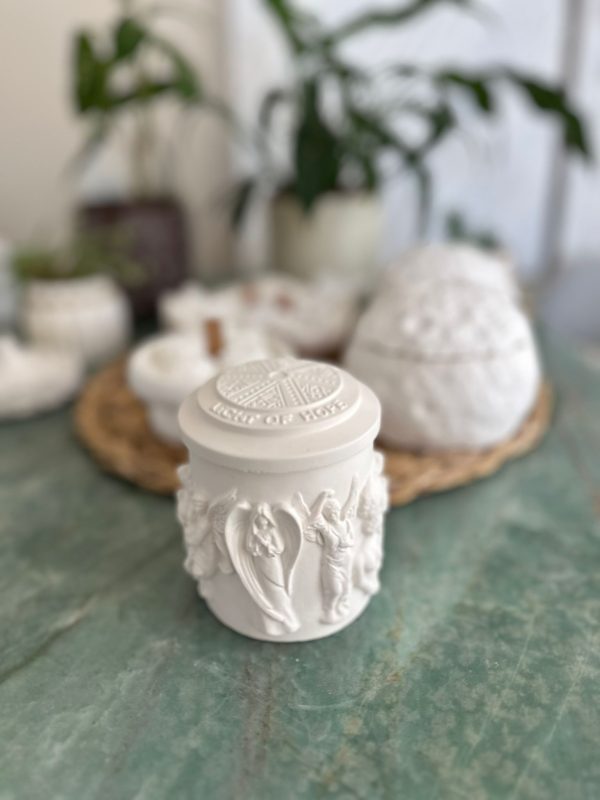 Gökyüzünden yeryüzüne inmiş gibi hissedilen, zarif melek figürleriyle süslenmiş bu özel mum, sadece bir dekor değil; içsel huzura açılan bir kapı. Celestia, doğallığın ve spiritüel zarafetin buluştuğu bir parça olarak, bulunduğu ortamda hem estetik hem de anlam yaratır.